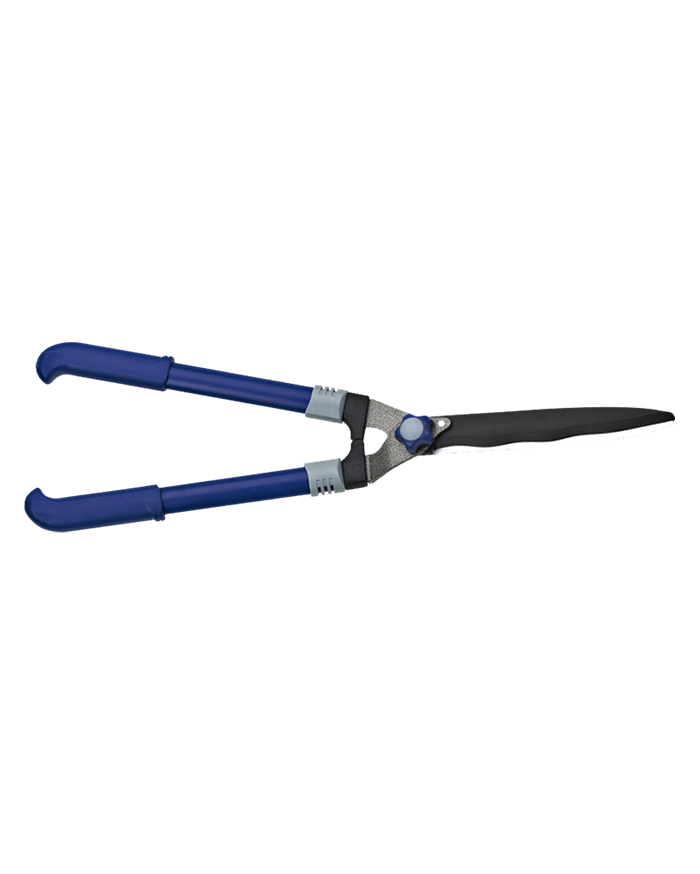 27-1/2''Hedge shear 12''wavy top blade Carbon steel TFE non-stick coating blades Oval aluminum tube handles with comfort grips Hand adjustable blade tension Cushion bumpers Package:blade with Pouch bag |